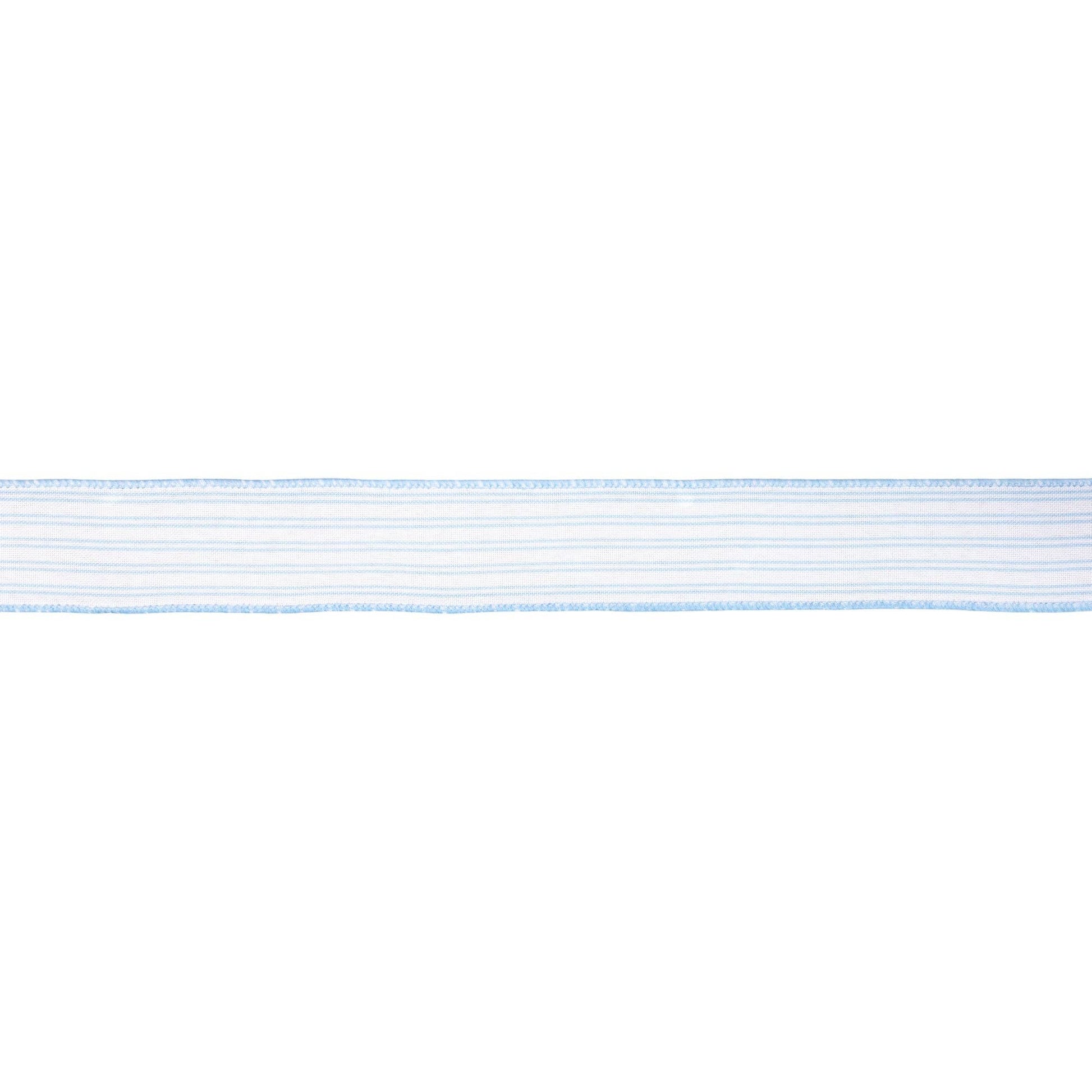 1 1/2" Wired Ribbon | Light Blue Ticking Stripe | 10 Yard Roll